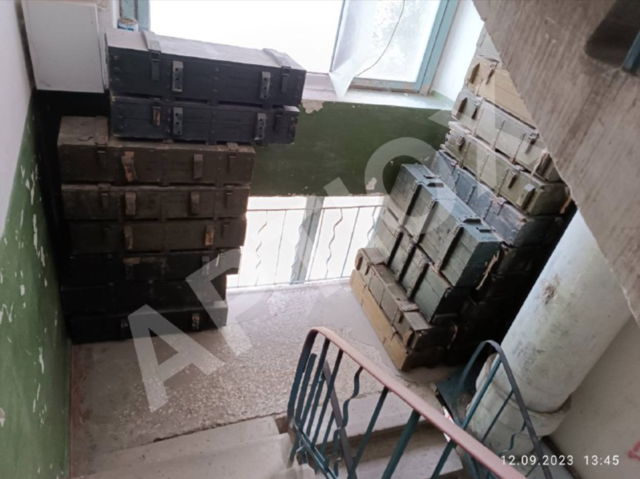 На фото показано, что один из подъездов жилого дома в Рубежном российские военные превратили в склад боеприпасов. Ящики с боеприпасами находятся на лестничном пролете. Нравится ли такое "соседство" жителям дома - остается только догадываться. Как обстоят дела в других домах - неизвестно. Не исключено, что подъезд, начиненный боеприпасами, - не единичное явление в Рубежном.