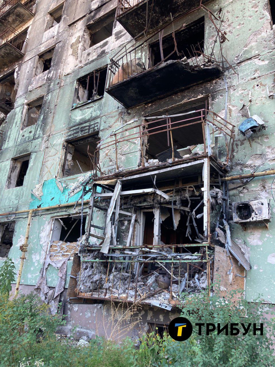 На фотографиях изуродованные и разбитые дома из разных районов оккупированного Северодонецка: шоссе Строителей 25, Гагарина 117 А, ресторан "Форест", магазин "Микс", шоссе Строителей 21 (или Гагарина 117), шоссе Строителей 25, Вилесова 43.