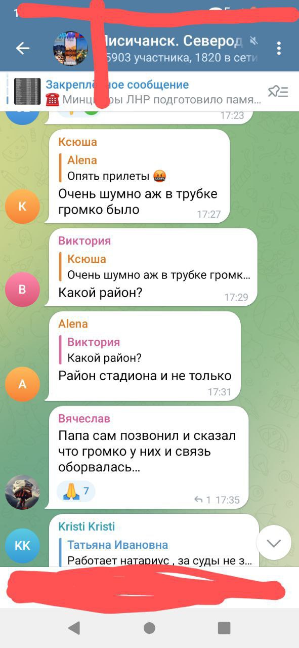 "Поступает информация о прилетах по центру Лисичанска. Подробностей пока нет", — говорится в сообщении чата.