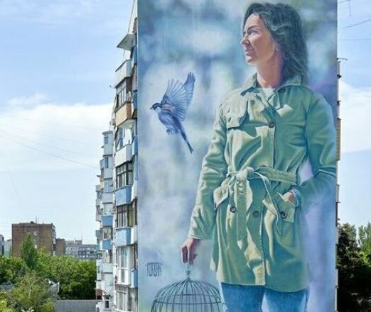 Мурал "Навстречу счастью" не имел никакого намека на историю Украины. На нем была изображена женщина с пустой клеткой. Героиня мурала является олицетворением всех женщин, которые смогли разорвать круг насилия и начать новую жизнь.