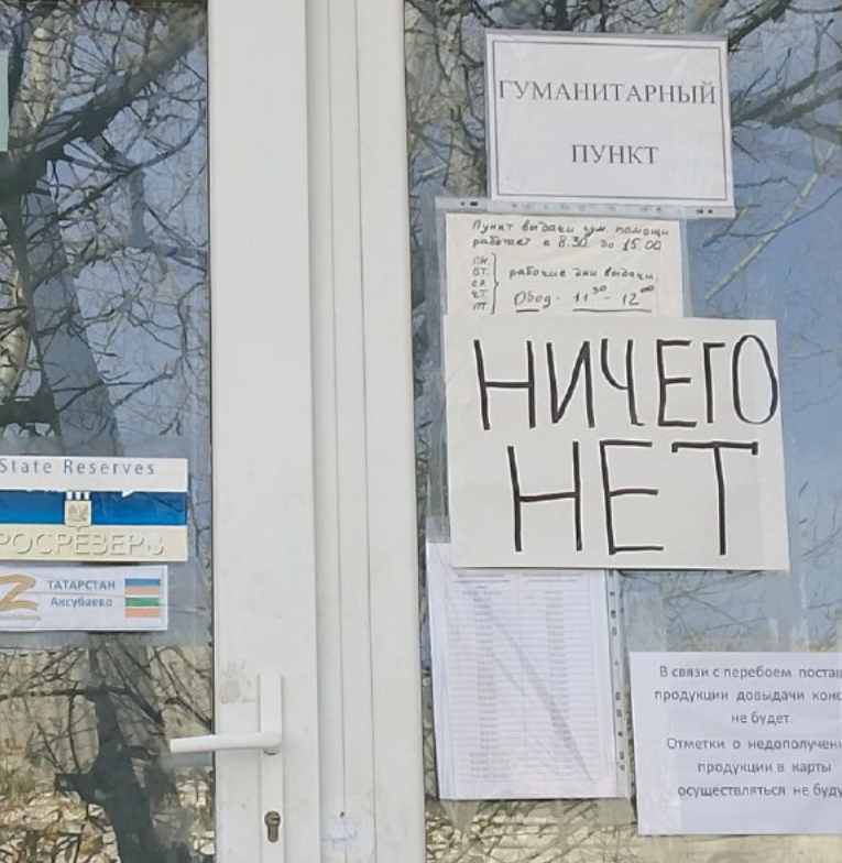 На фото - пункт выдачи гуманитарной помощи в Лисичанске с красноречивой надписью "Ничего нет".