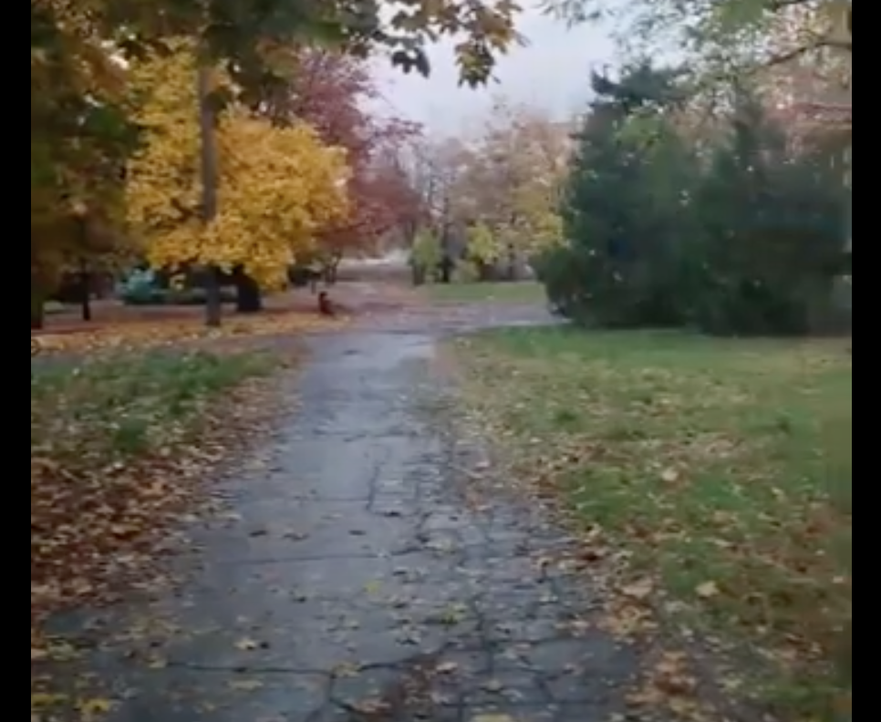 На видео показан парк в центральной части города. Первое, что бросается в глаза, - пугающая пустота. Нет ни одного человека ни в самом парке, ни на дороге, котоаря попадает в кадр. Слышны только шаги автора видео и пение птиц.