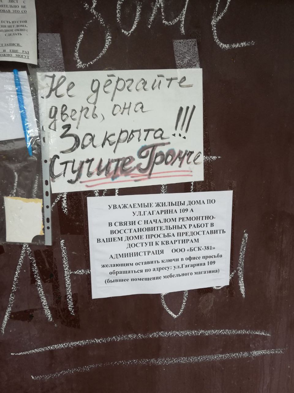 Подъезды жилых домов "украшают" объявления: "Двери закрыты, стучите громче".