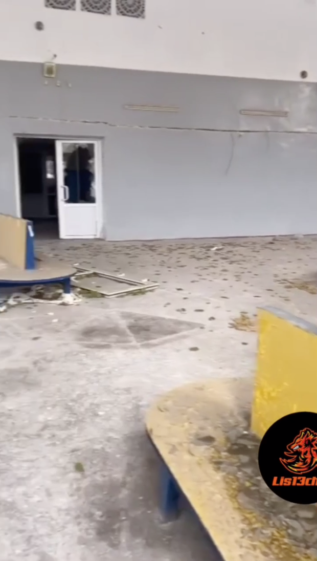 На фото показано, как сейчас выглядит старый автовокзал. Здание заметно пострадало от обстрелов. В глаза бросается и еще одна деталь - в здании царит полная пустота.