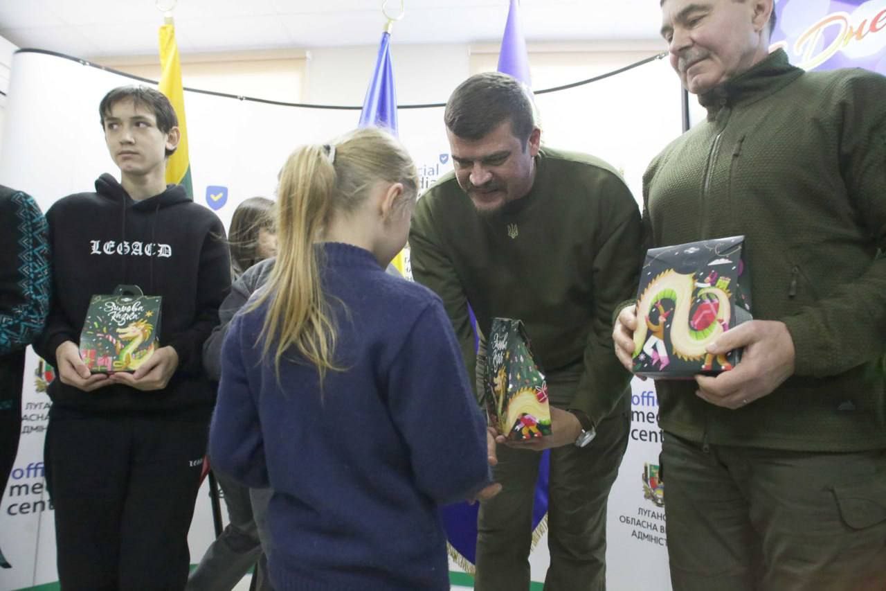 "Вручили каждому сладкие пакеты при поддержке Почетного консула Литовской Республики в Луганской области Робертаса Габуласа и отвезли детей на спектакль "Скудж и рождественское чудо", чтобы они хоть на немножко забыли об оккупации своих домов и войне", — говорится в сообщении.