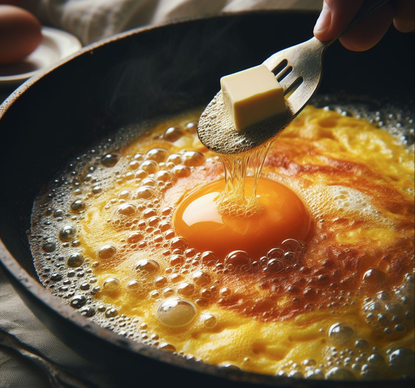 Шаг 2. Далее готовится омлет, который послужит одним из элементов начинки мясного рулета. Взбейте яйца с молоком, посолите, поперчите. Полученную смесь необходимо вылить на разогретую со сливочным маслом сковородку. Через 6-7 минут омлет будет готов.
