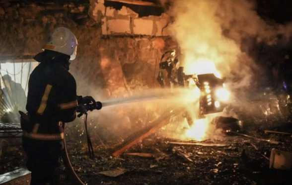 "На месте произошел пожар, который был оперативно ликвидирован сотрудниками ГСЧС. Ангар разрушен дотла, три автомобиля выгорели, 11 повреждены", — говорится в сообщении.