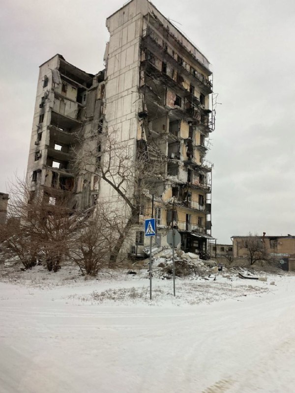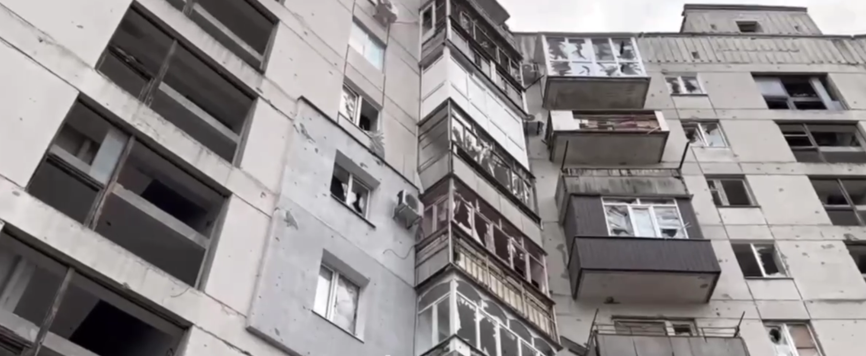 "В сильно поврежденном из-за обстрелов российских оккупантов дома по улице Вилесова, 43 продолжают жить люди. Недавно там обрушился первый подъезд".