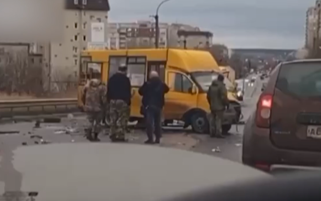 Во временно оккупированном Луганске произошло ДТП. Оккупант на легковом автомобиле врезался в маршрутку.