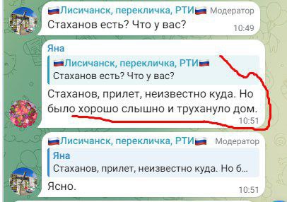 Украинский защитник с позывным "Східний" также сообщил, что прилет в районе Кадиевки произошел около 11:30.