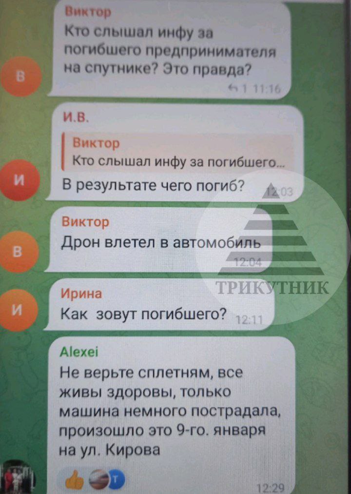 Также жители города сообщают об атаке дронов. Как пишут очевидцы, дрон якобы "влетел в автомобиль предпринимателя".