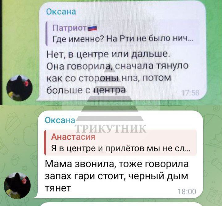 Свидетели происшествия сообщают, что воздух наполнился едким запахом, а облако черного дыма начало накрывать небо. На форумах и в чатах, контролируемых сепаратистами, появились сообщения о неспокойной обстановке в городе: