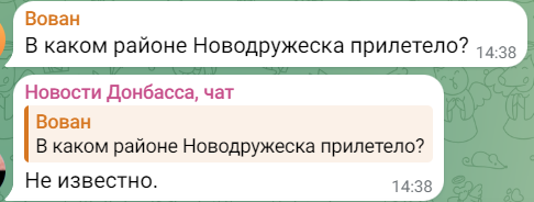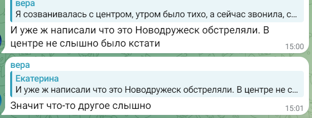 "В другом чате написали 2 часа назад Новодружеск обстреляли, есть раненые".