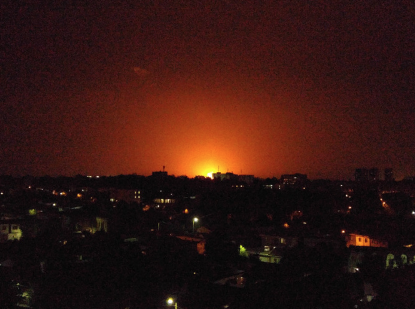 После "прилета" начался пожар. В сети распространились кадры с места событий, на которых видно зарево. Известно, что огонь охватил достаточно большую территорию и потушить его оперативно не удалось. В сети произошло падение напряжения.