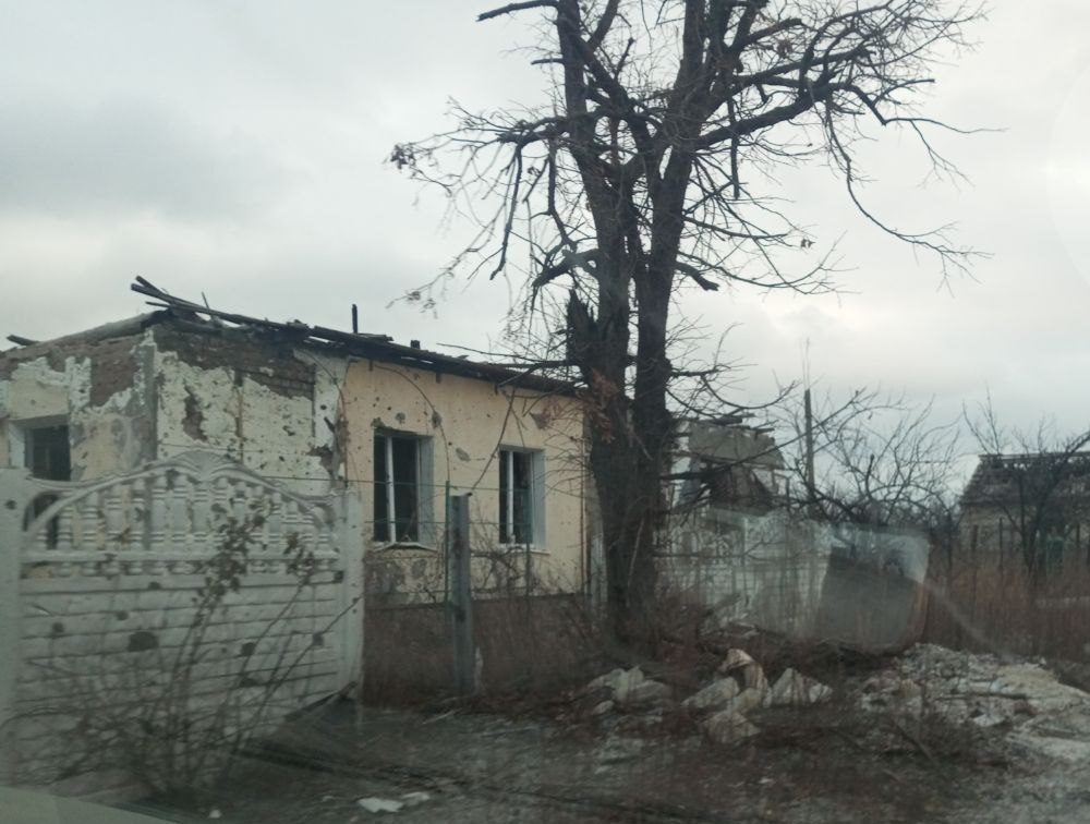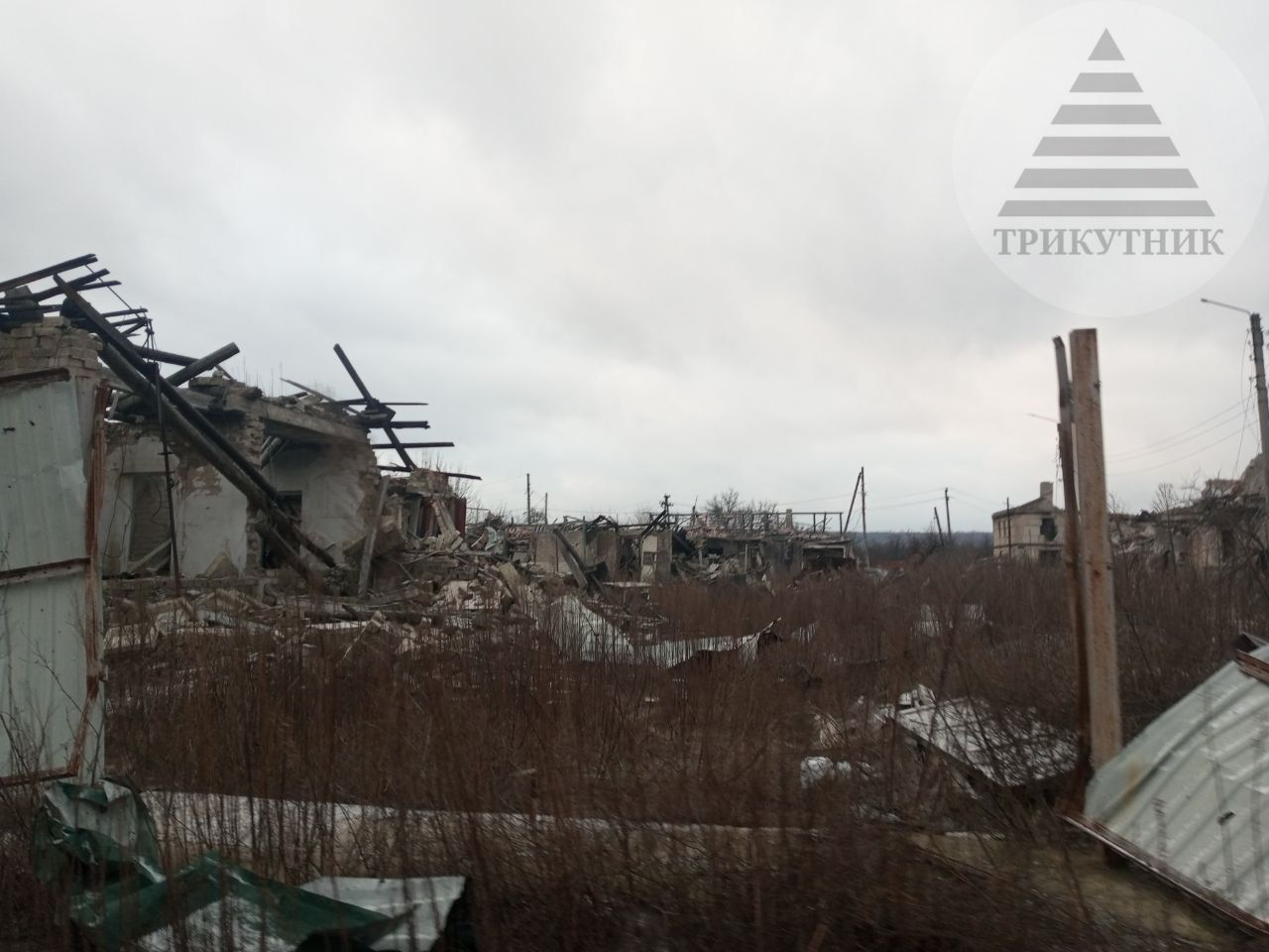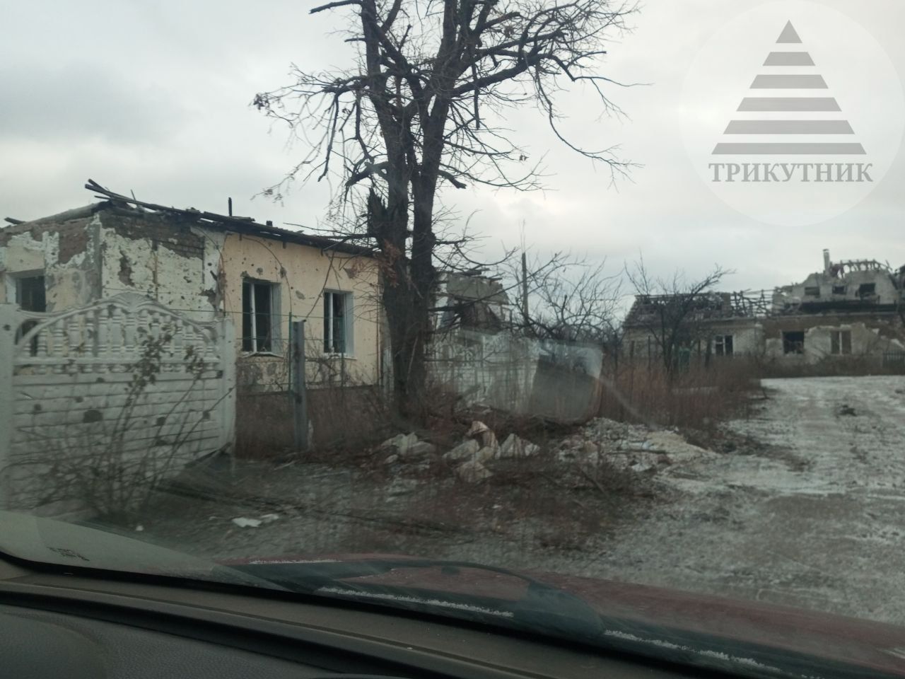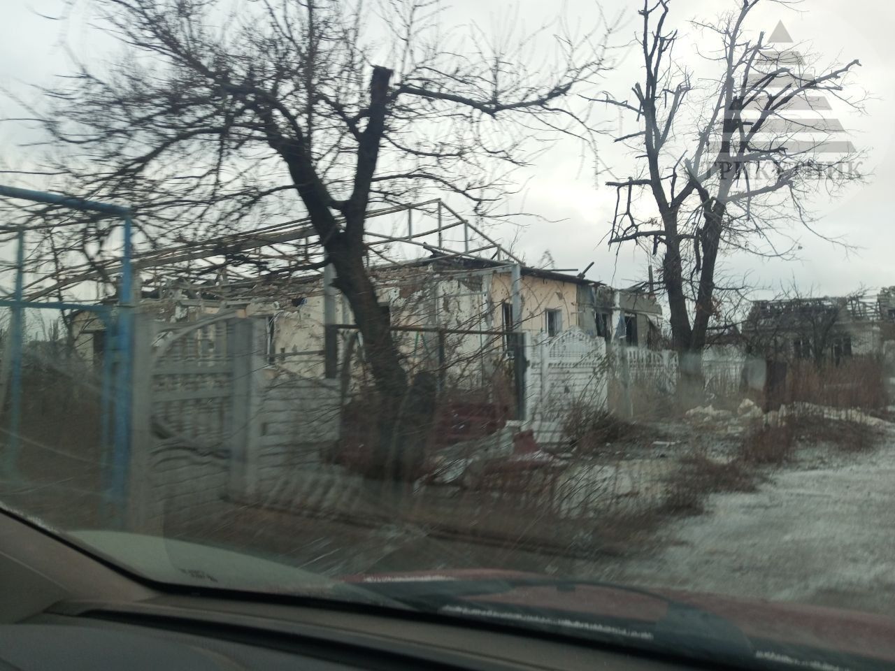 Дома частного сектора разбиты и изуродованы, по улице не осталось ни одного уцелевшего здания.
