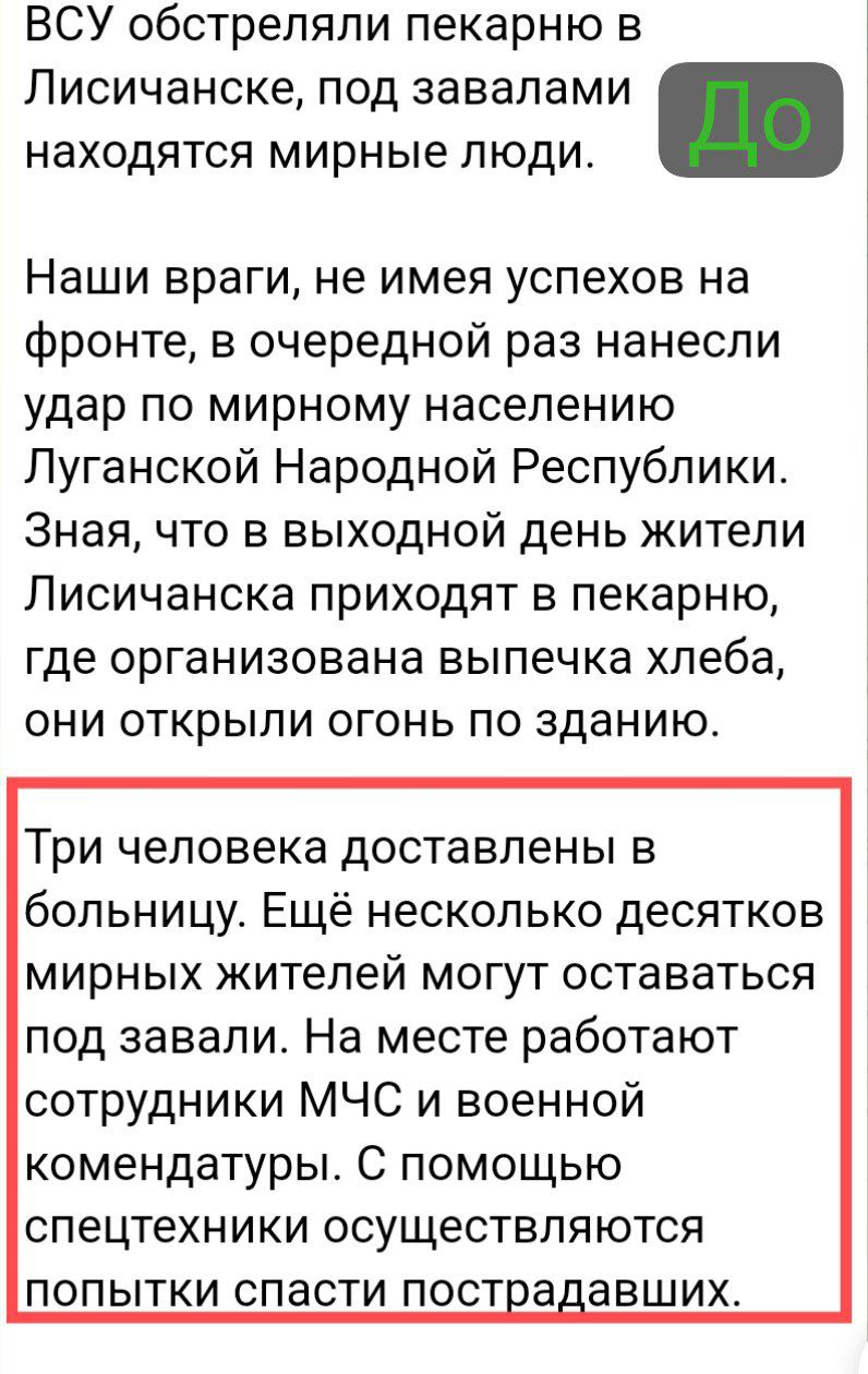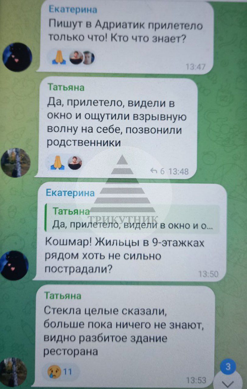 "Сегодня, примерно в 14.00, прилетело по пекарне "Адриатик". Под завалами находятся мирные люди; Два человека погибли, шесть в больнице. До 40 человек могут находиться под завалами пекарни", - сообщают оккупационные ресурсы.