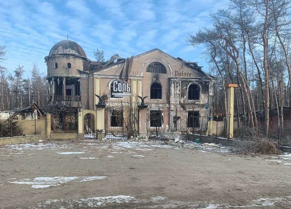 На кадрах видно, что в результате российских обстрелов, от ресторана, который расположен по шоссе Строителей, 1, остались одни стены.