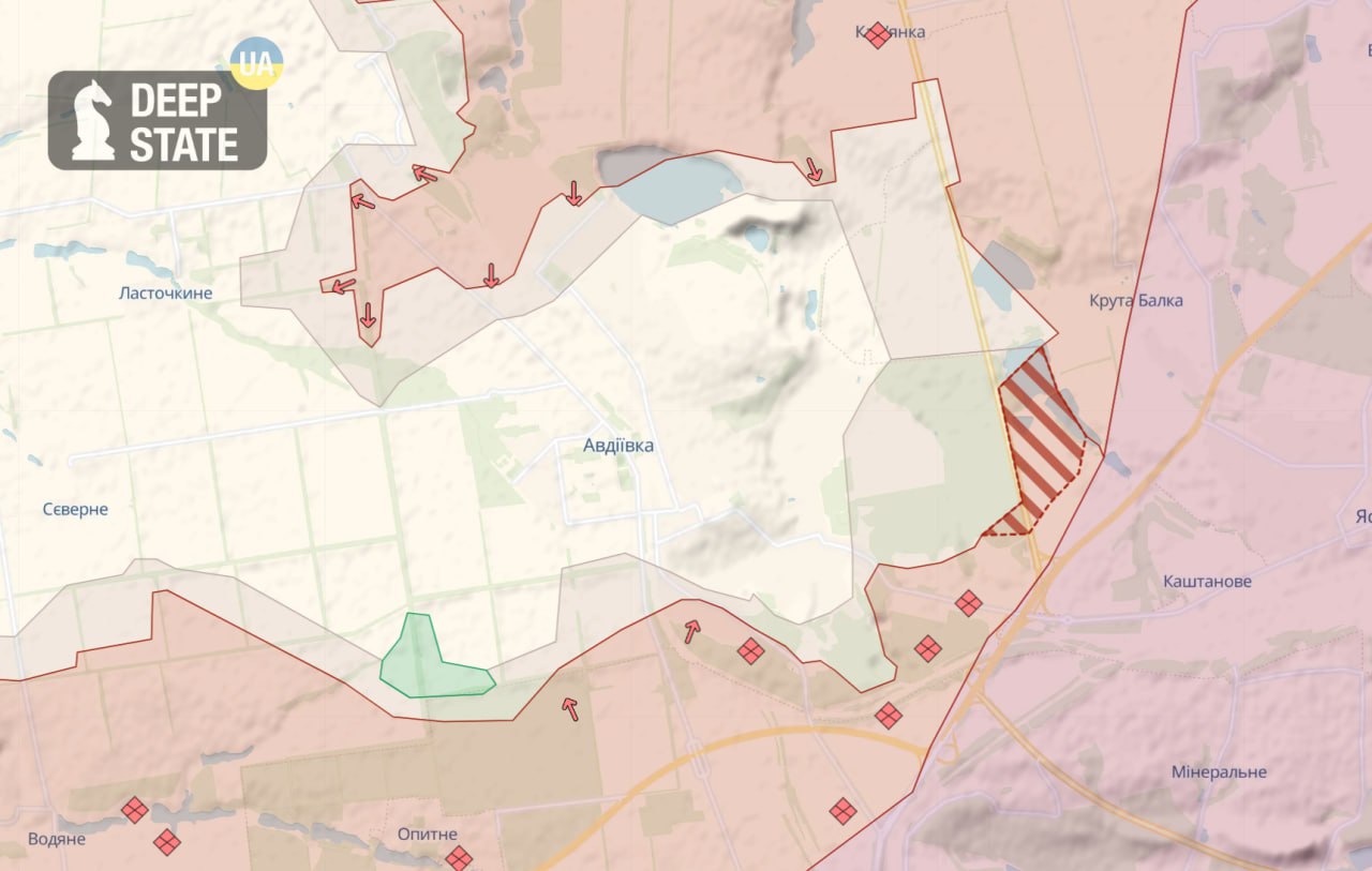 Также факт захвата ДФС подтверждает украинский аналитический проект DeepState. Южнее Авдеевки российские военные захватили опорный пункт ВСУ "Чебурашка", который находился на развязке трассы на Донецк.