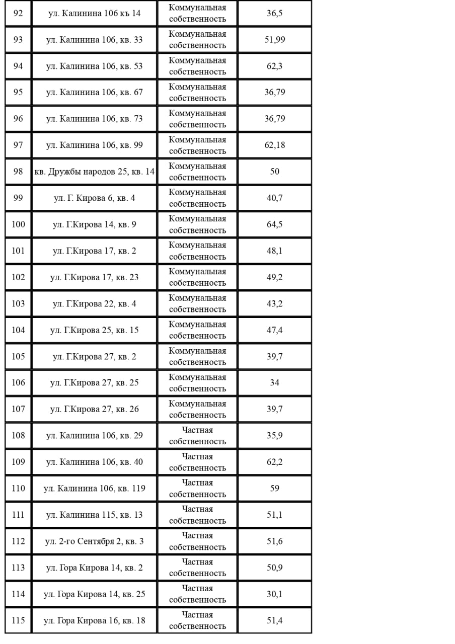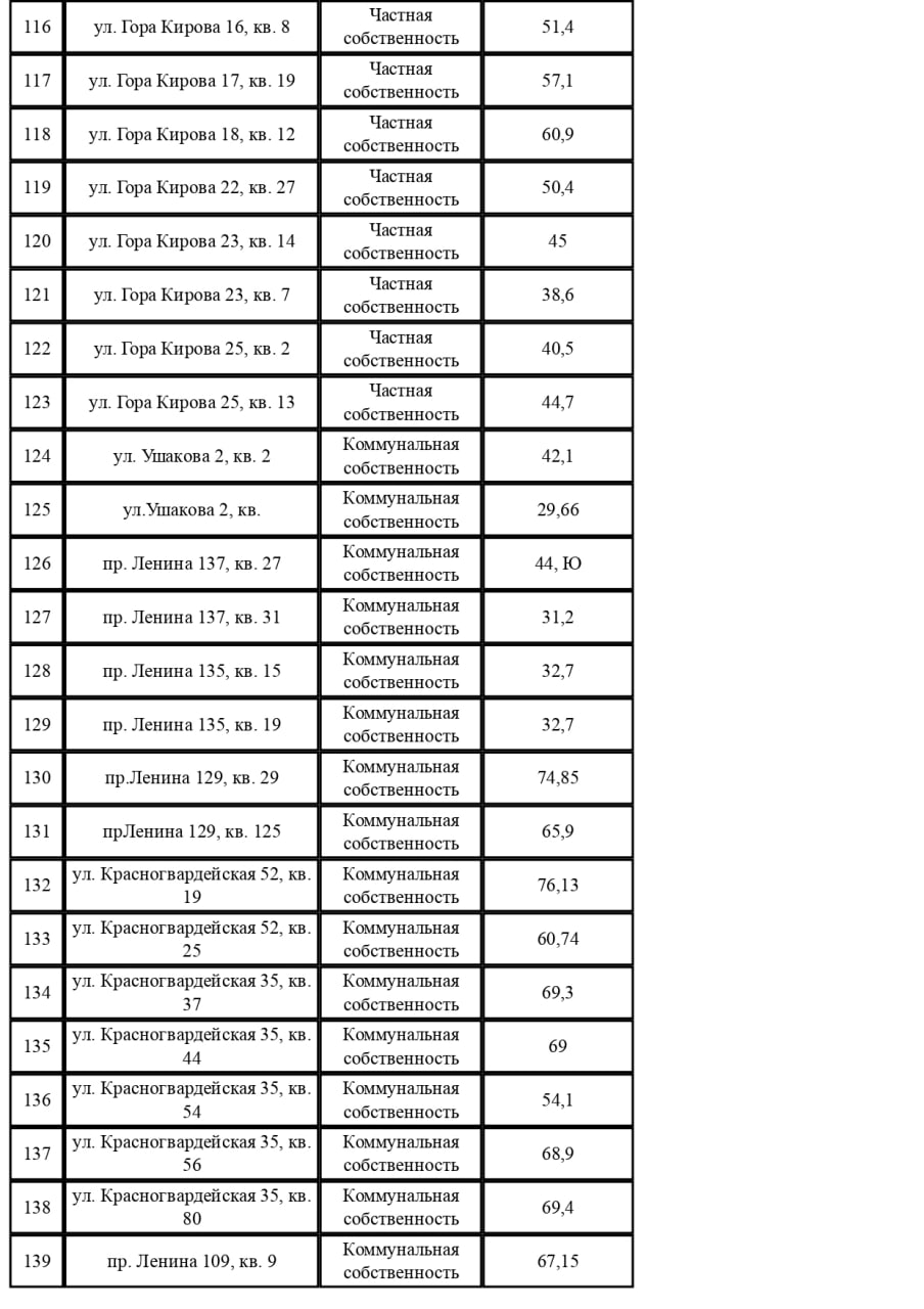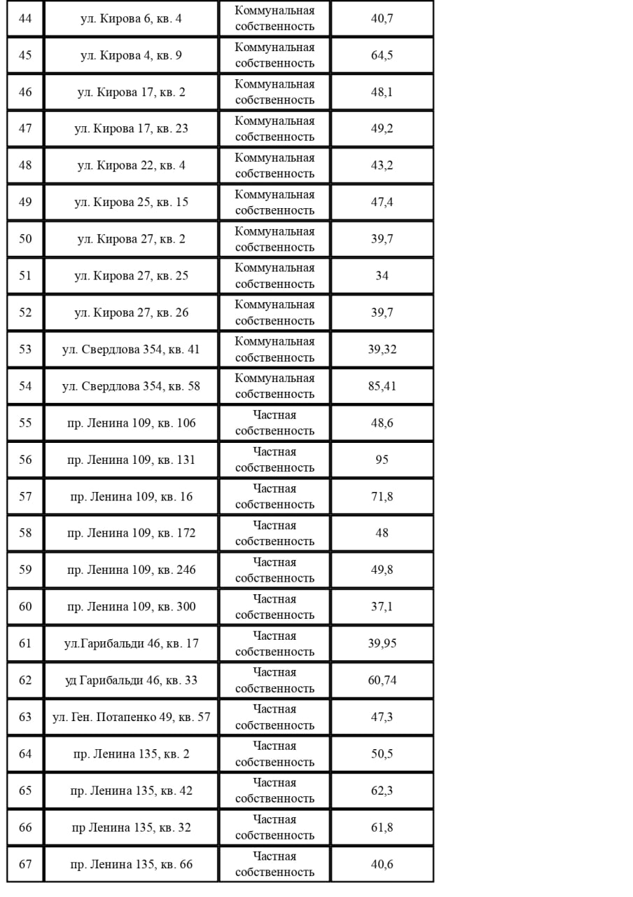 Список квартир многоквартирных домов города Лисичанска на 2024 год: