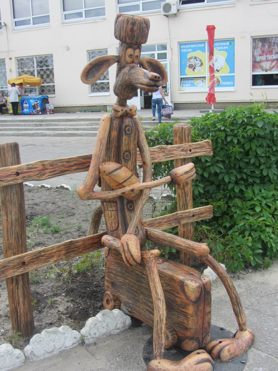 В сети показали свежие кадры из оккупированного Северодонецка Луганской области. На них разбитый автовокзал, и изуродованная деревянная скульптура собаки - она осталась без головы. Зачем это было сделано – неизвестно.