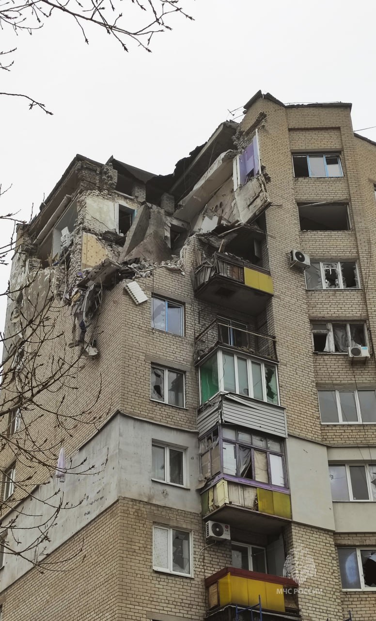 Как пишут оккупанты, "в результате обстрела погиб мужчина, разрушены 2 квартиры в 9-ти этажном жилом доме".