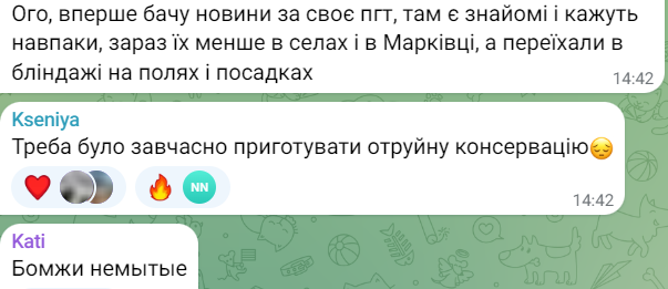"Местное население н.п Марковки Луганской области жалуется на кратное увеличившееся количество оккупантов и техники. Без согласия местных заселяются в дома и сараны, в подвалах обустраивают склады БК. Распространены случаи мародерства, воруют кур и консервы", - написал он.