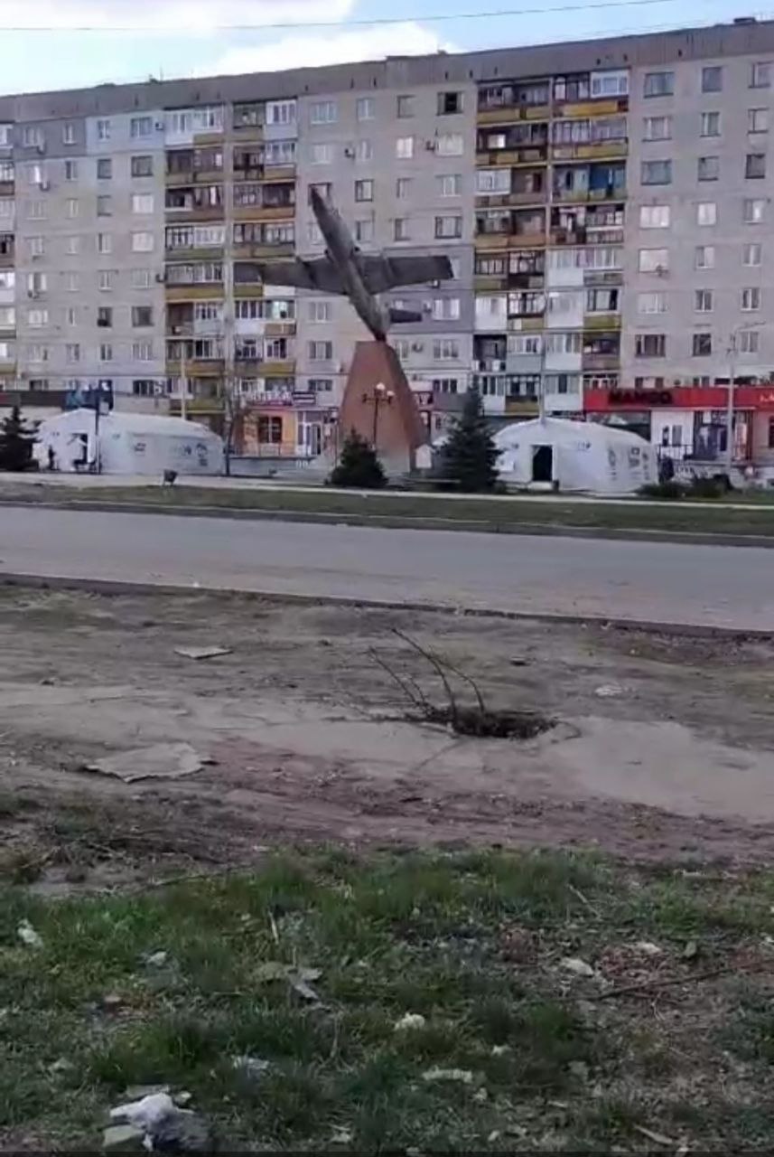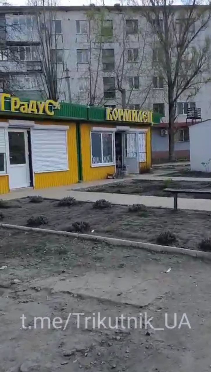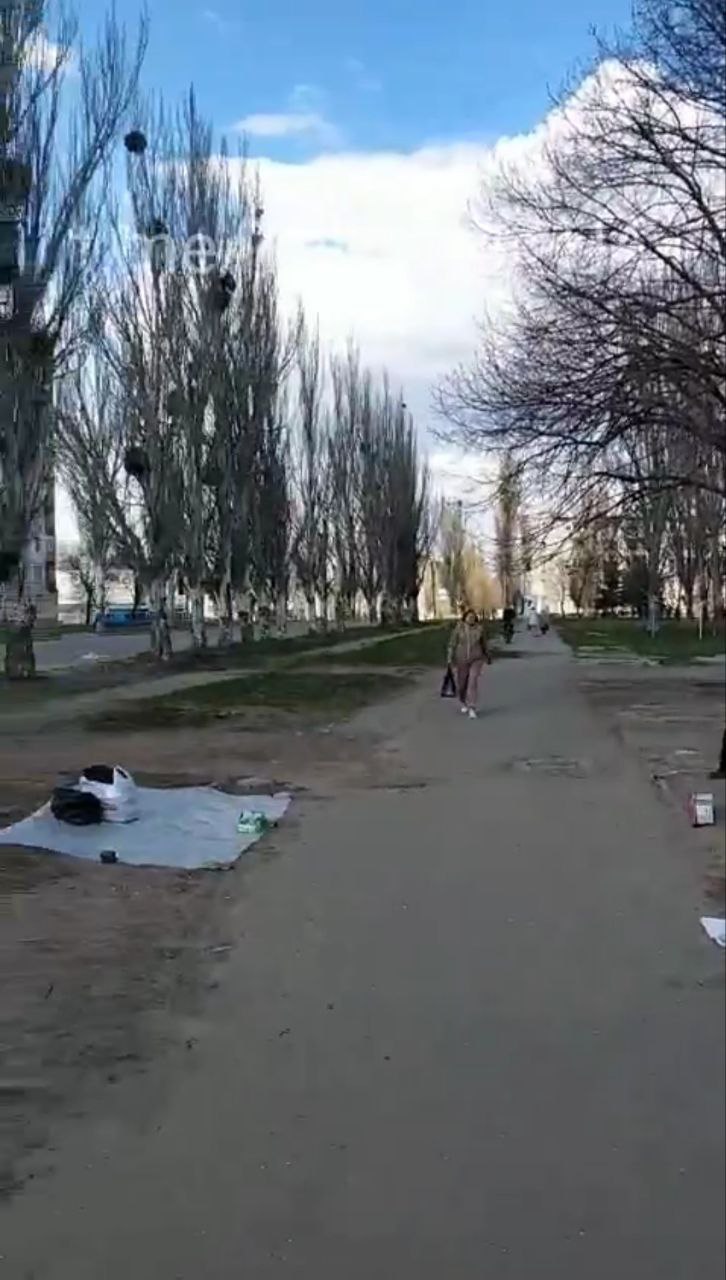 На этот раз в объектив камеры попал район РТИ. Кадры очень похожи на все, которые сделаны в оккупации: пустые и безлюдные улицы, грязь вокруг, захламленность и запущенность, ограбленные и уничтоженные магазины и "триколоры".