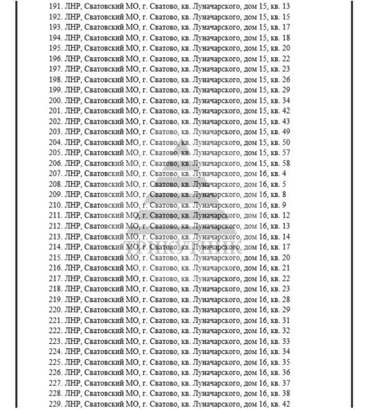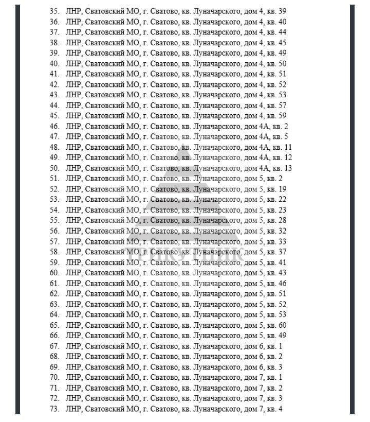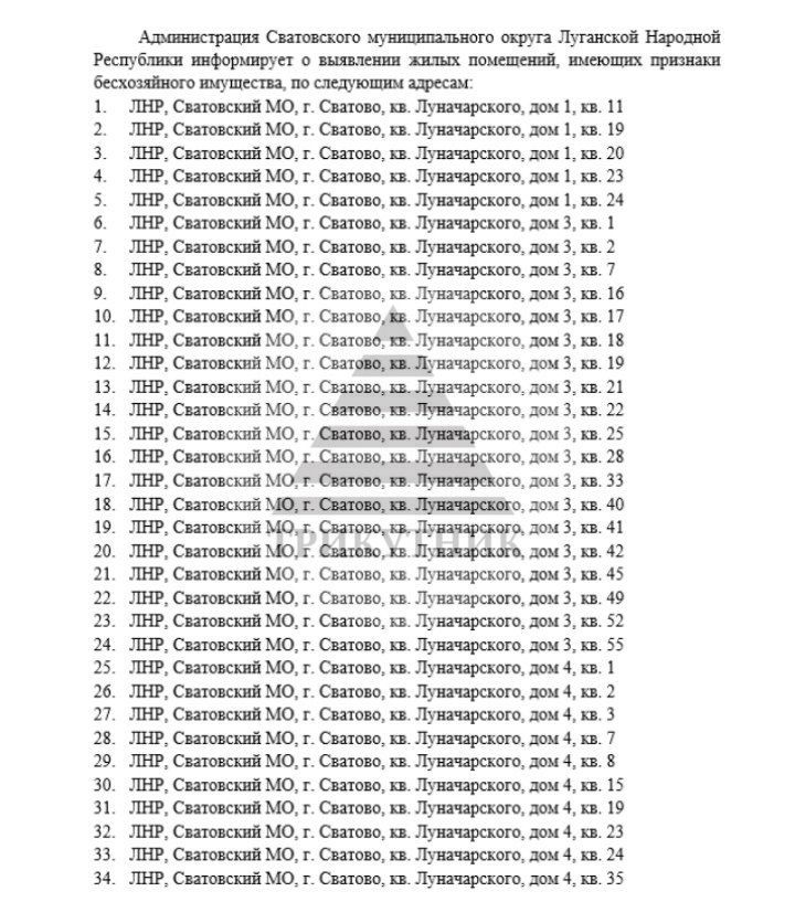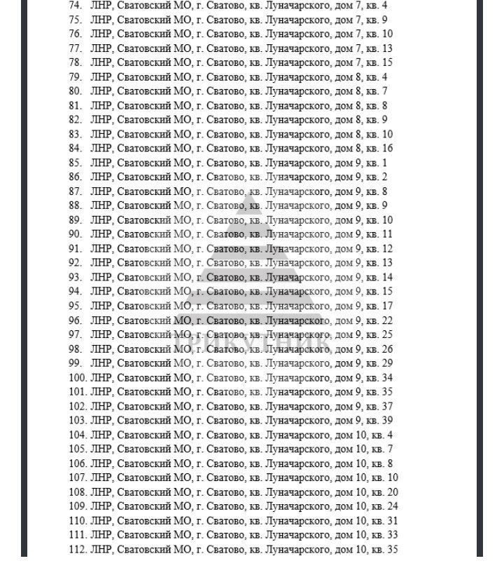 В оккупированном Сватово очен быстро отреагировали на "закон". Хватило месяца, чтобы проверить все квартиры (а ведь это должна делать специальная комиссия) и вынести "вердикт" - более 500 квартир будут отняты у законных владельцев.