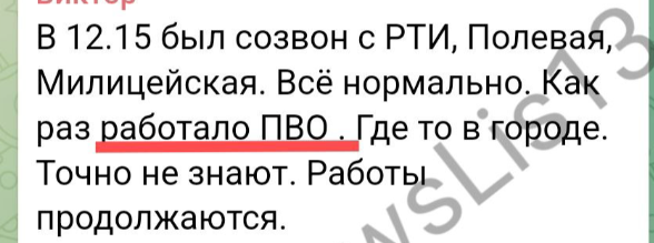 По информации из сети, сегодня, после 12 дня жители р-на РТИ слышали работу ПВО. Позже появились сообщения, что якобы "прилетел" УАБ в районе шахты: