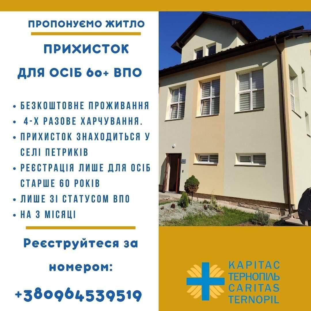 Во временном приюте для переселенца из Луганской области на Тернопольщине в селе Петриков появились свободные места. Регистрация только для лиц старше 60 лет, имеющих статус ВПЛ.