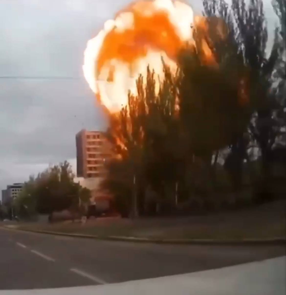 В сети появились кадры, зафиксировавшие момент мощного удара по Донецку 29 мая. Взрыв произошел в здании на Киевском проспекте, которое до 2014 года служило местом расположения института "Донбассцивилпроект".