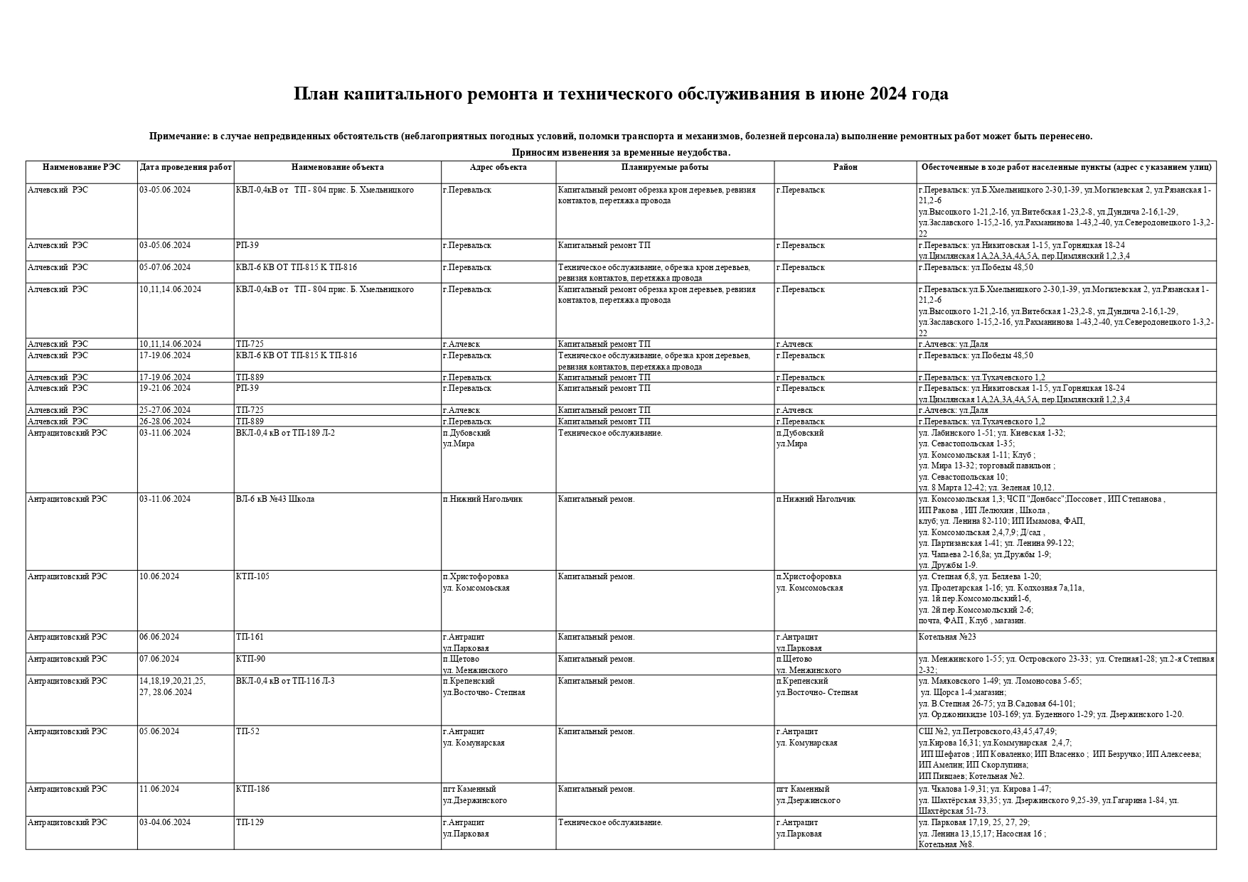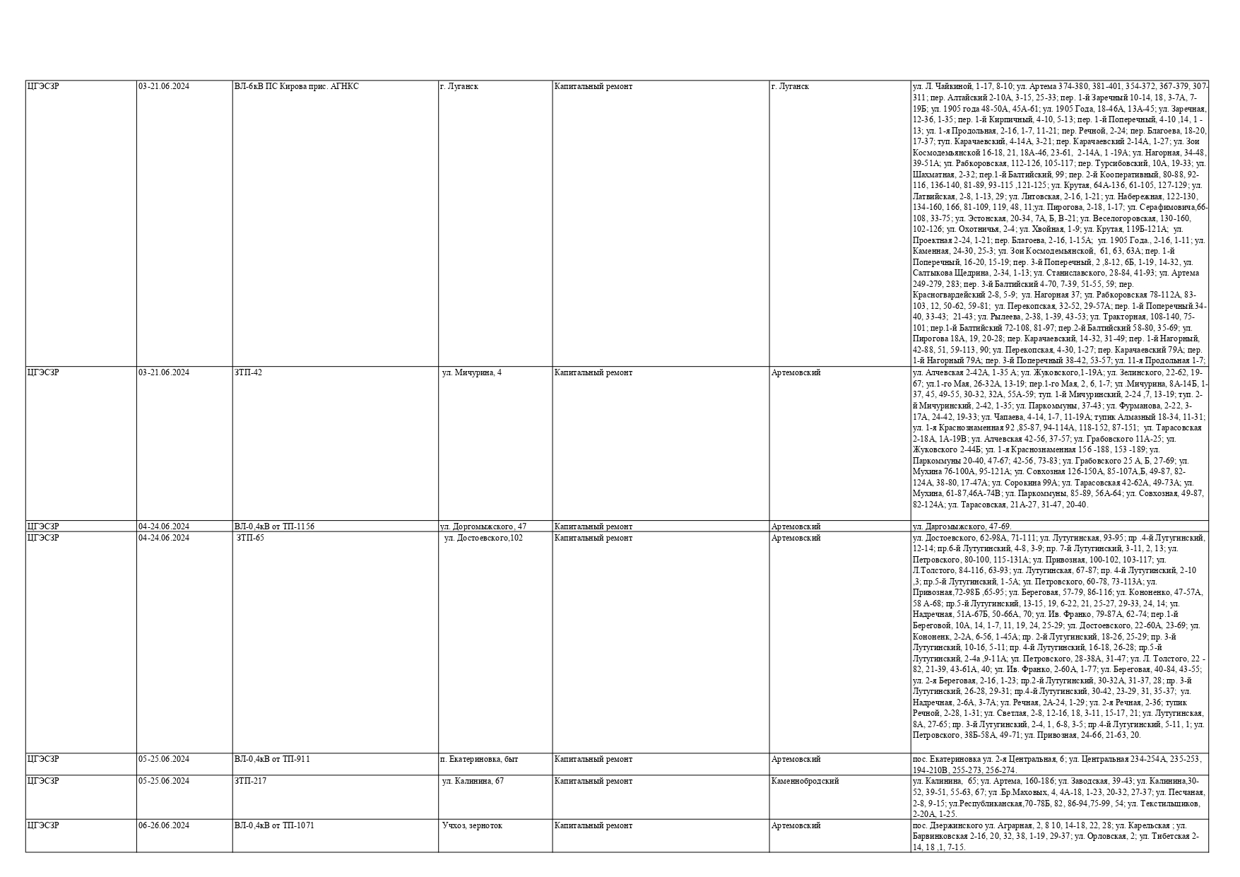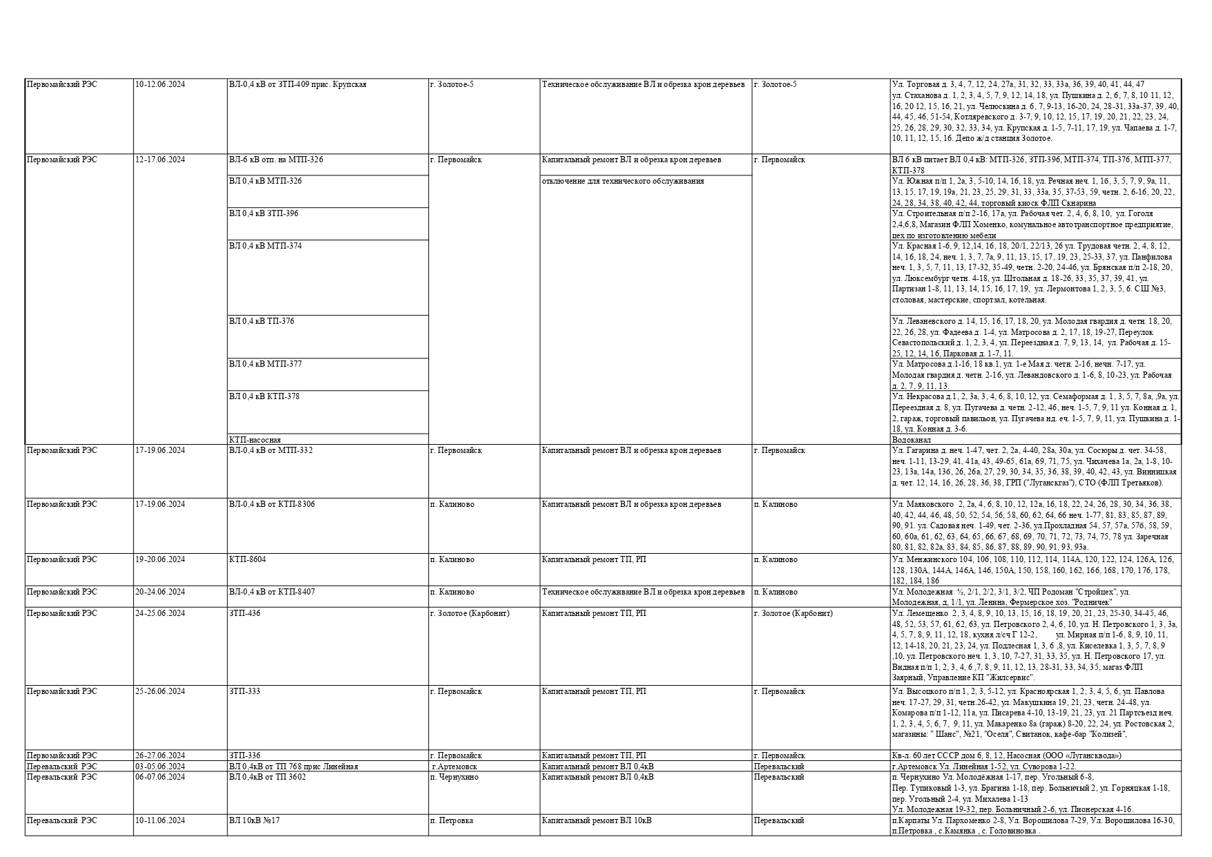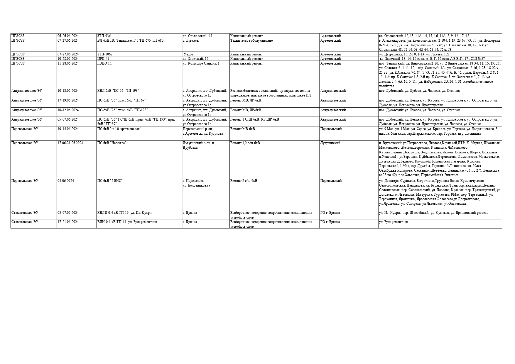 Оккупационная "администрация" области опубликовала на пропагандистский пабликах график запланированных отключений электроснабжения в июне для некоторых районов Луганска и "муниципальных округов ЛНР" из-за ремонтных работ на электрооборудовании, передает Час Пик.