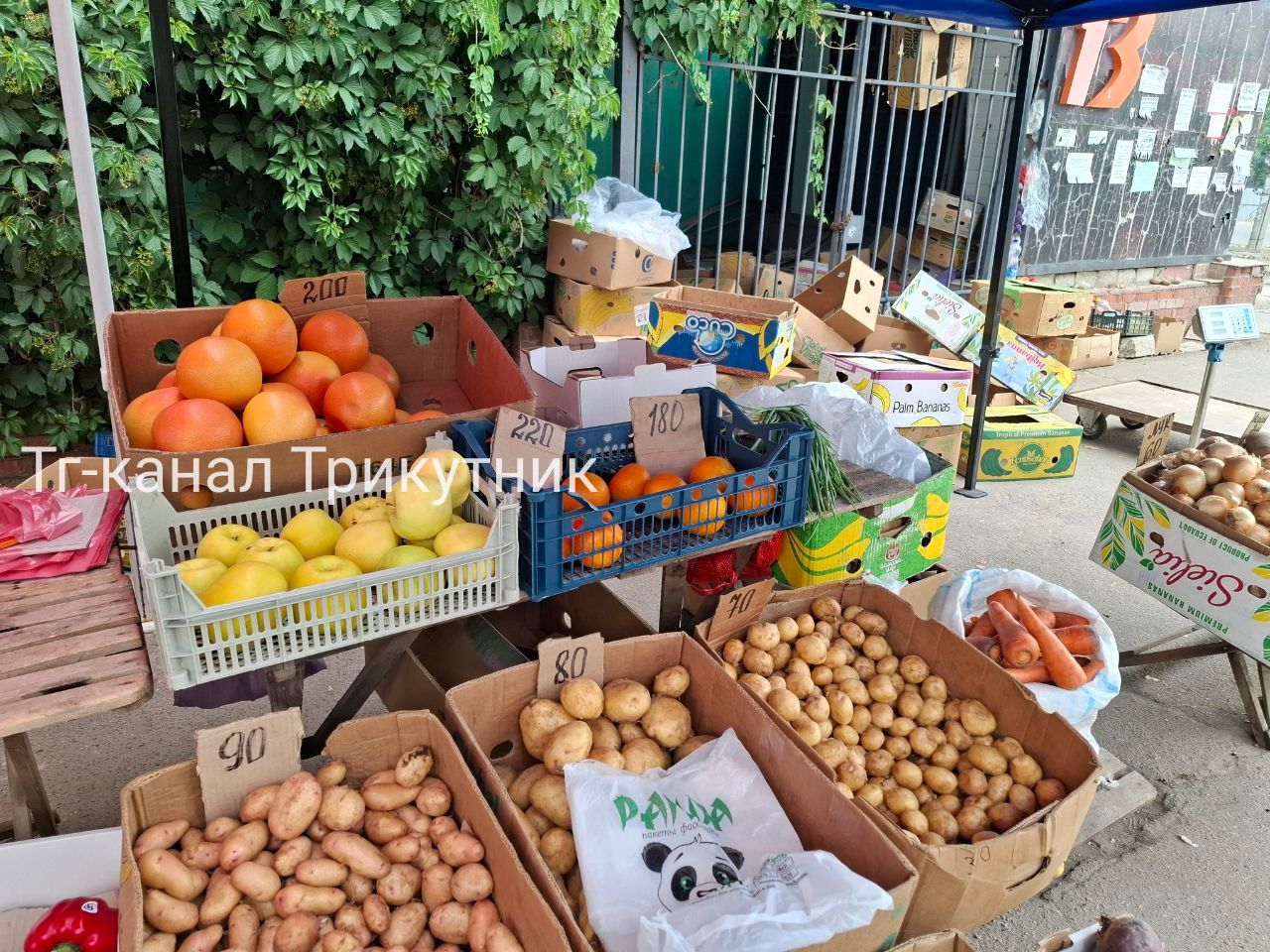 Так, на фотографиях видно, что стоимость килограмма помидоров может достигать 150 - 190 рублей. Огурцов и кабачков - 80 рублей. Баклажаны и сладкий перец обойдутся в 200 руб/кг. Картофель стоит от 60 до 90 рублей. Лук и капуста - по 60.