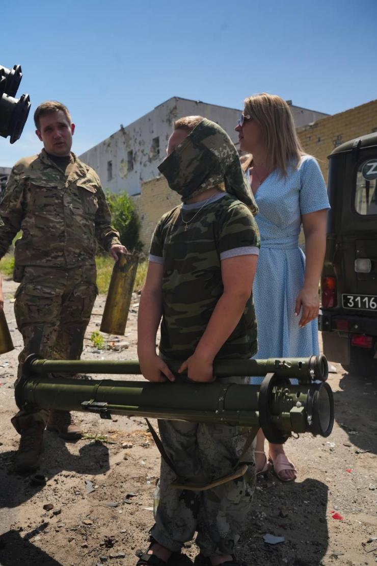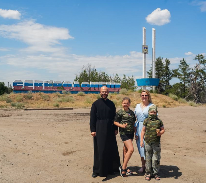 В одной из последних публикаций в телеграм-канале российской волонтерской организации был показан "семейный выезд" в зону так называемого СВО. Волонтер из России вместе с семьей посетил оккупированный Северодонецк в Луганской области, о чем свидетельствует фото, на котором они позируют на фоне разрушенных зданий.