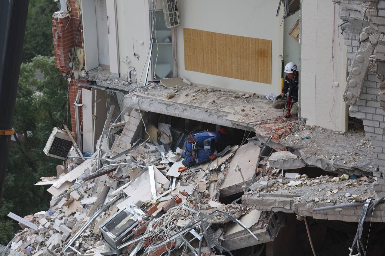 Поисково-спасательная операция продолжается. Спасатели разбирают перекрытия разрушенных этажей.