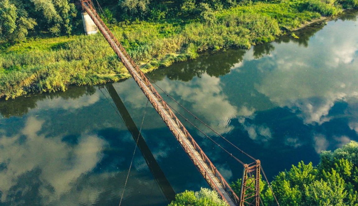 На Луганщине в 2022 году во время боев были разрушены практически все мосты через реку Северский Донец. Не стал исключением и пешеходный канатный мост вблизи города Приволье.