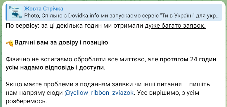Уже в первые часы после запуска сервис "Ты в Украине" получил большое количество заявок на подключение, что свидетельствует о высокой потребности в подобных решениях среди жителей оккупированных территорий.