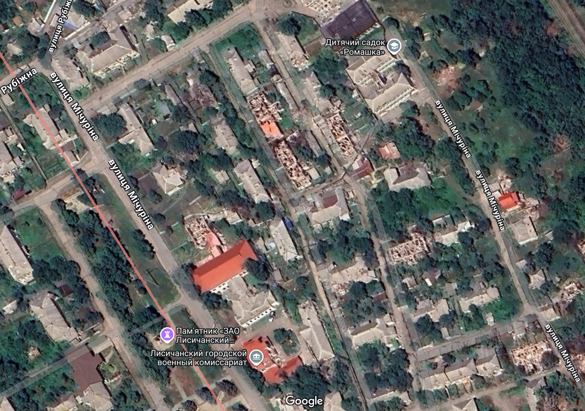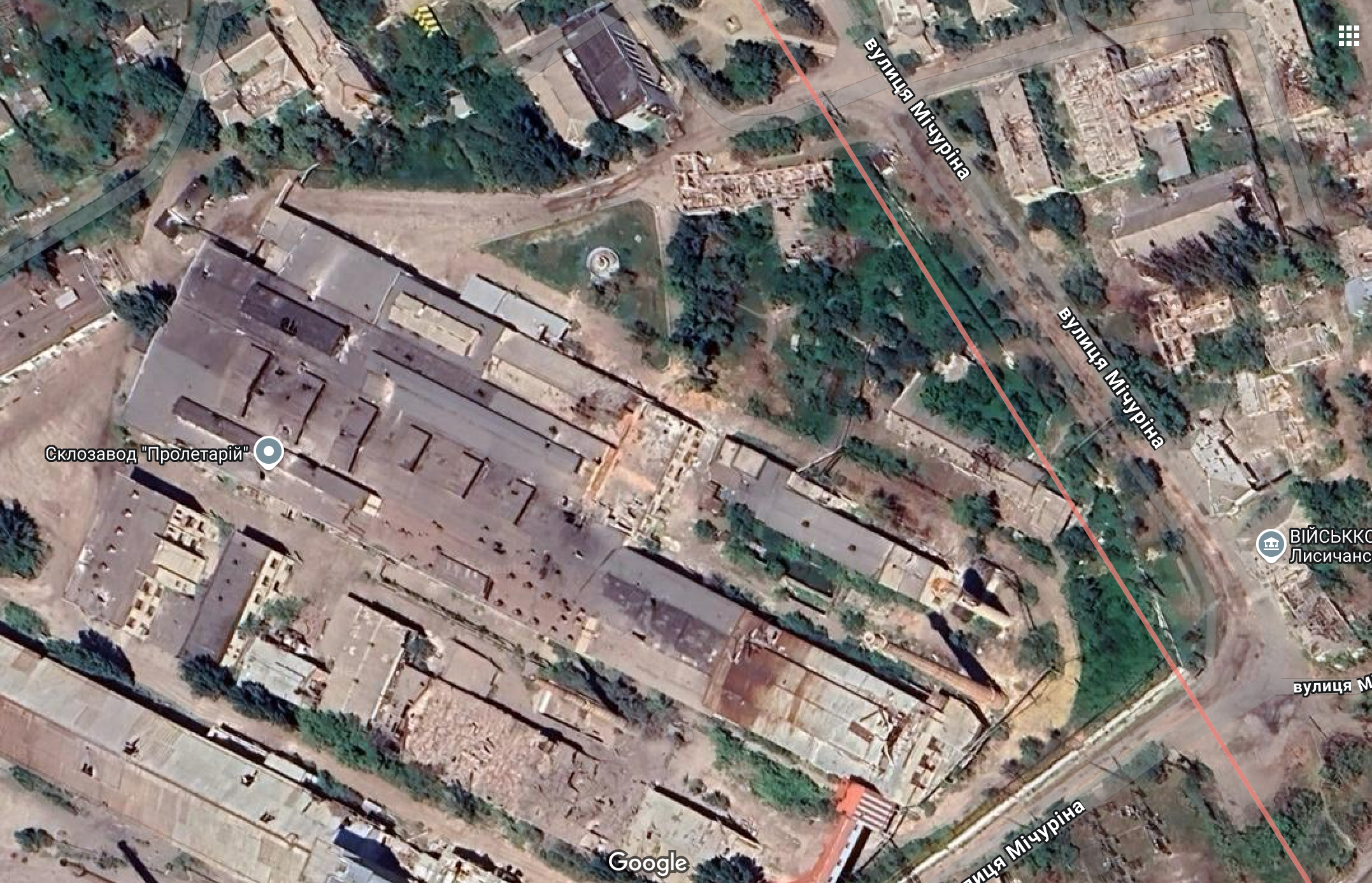 Час Пик исследовал актуальную Google карту Лисичанска и выяснил, что происходит с заводом "Пролетарий" и домами на близлежащих улицах.