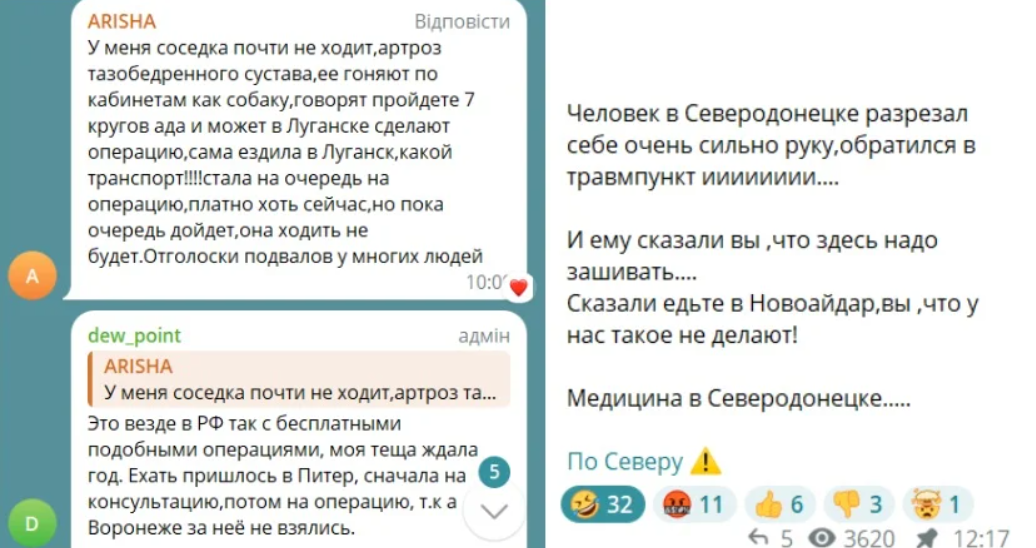 Оккупационные власти пытаются исправить ситуацию, завозя врачей из других городов и даже из России, однако качество медицинских услуг оставляет желать лучшего. Местные медработники жалуются на низкие зарплаты и отсутствие необходимых условий для работы.