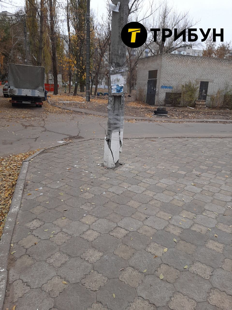 На фото показано, как "ремонтируют" поврежденные столбы в городе. Столб практически перебит и угрожает падением. Но опасная ситуация россиян не интересует. Максимум, который возможен - это обмотать опору тканью. Выглядит не очень надежно.