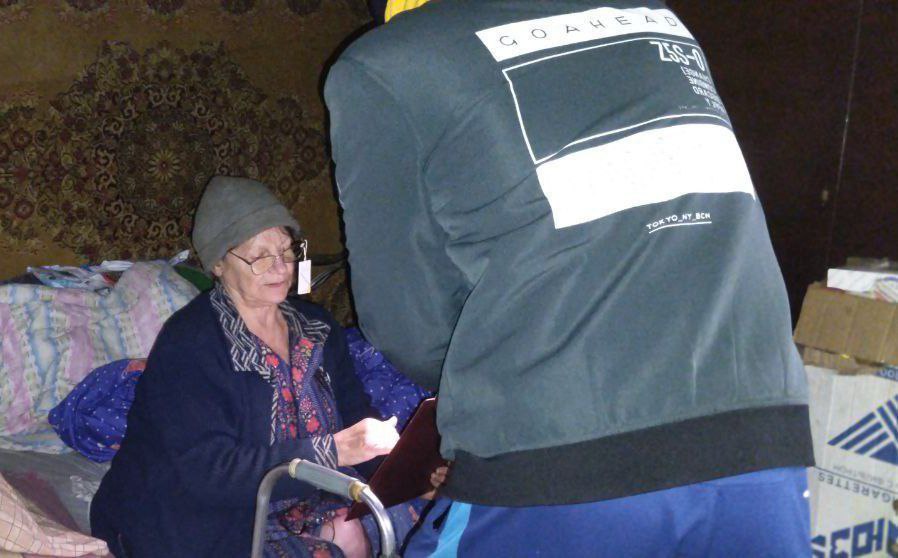 В городе, где осталось менее сотни жителей, волонтеры предложили бесплатную проверку зрения. После короткой диагностики каждому желающему выдали очки в соответствии с его потребностями. На импровизированную акцию собралось 65 человек - большинство из них пожилого возраста.
