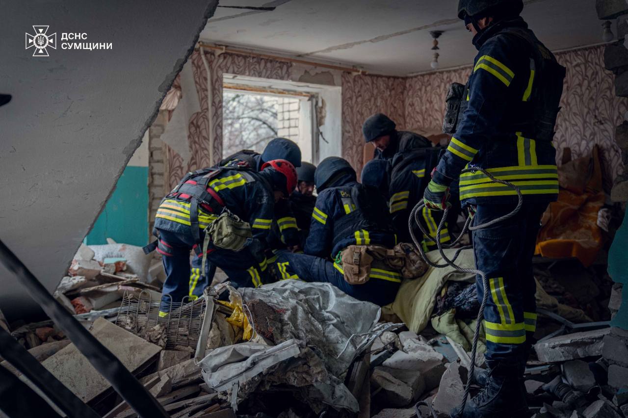 В городе Глухов Сумской области завершена спасательная операция на месте удара российского дрона по общежитию. Трагедия, которая произошла в результате очередного акта агрессии России, унесла жизни 12 человек, среди которых был мальчик, которому вскоре должно было исполниться всего 8 лет.