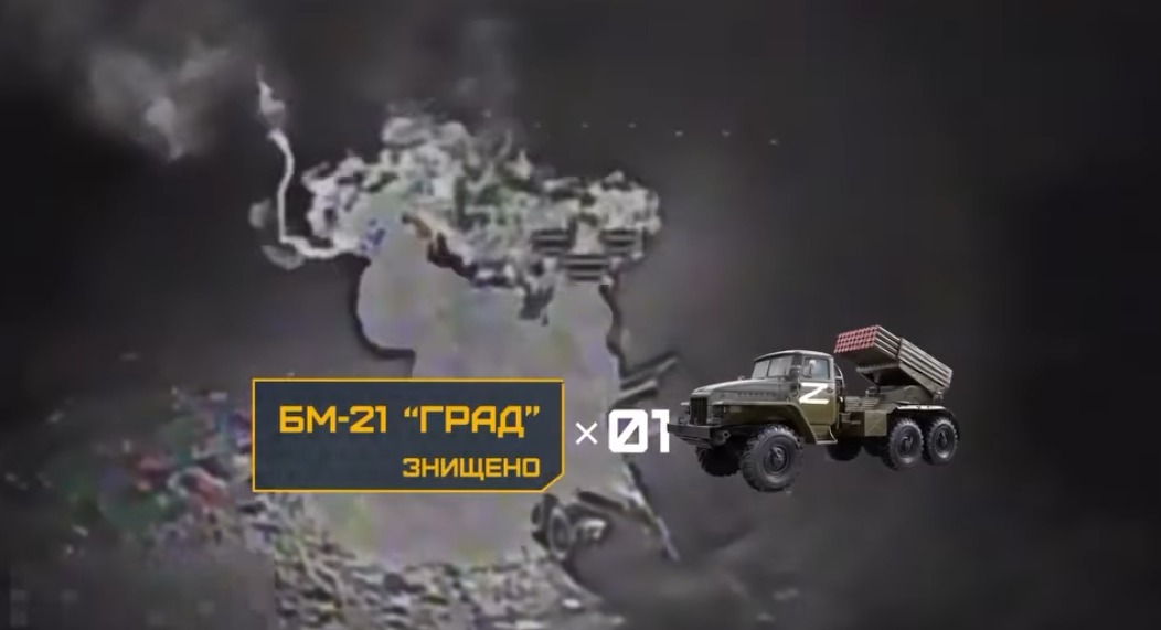 "На Луганщине бойцы батальона ударных БпАК 92-й отдельной штурмовой бригады имени кошевого атамана Ивана Сирко в сотрудничестве с Первой Президентской бригадой НГУ "Буревій" уничтожили российскую БМ-21 "Град", - говорится в сообщении.