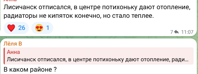 Тема отопления, конечно, остается в центре внимания. Насколько долго продлится текущая ситуация с теплом в Лисичанске и когда отопление дойдет до всех районов города, пока неизвестно. Но жители уже ждут дальнейших изменений и обсуждают возможные последствия.