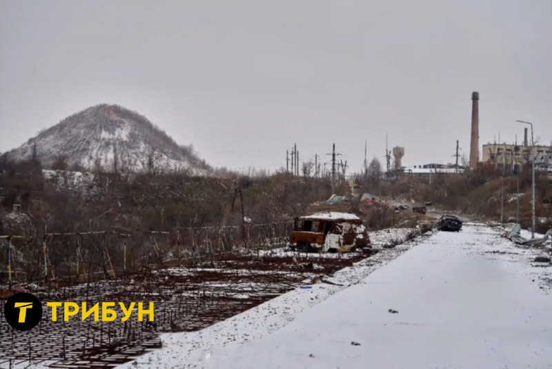 Снимок демонстрирует запущенность и разрушение: среди заснеженных пейзажей, в частности террикона, заметна разбитая техника, которую никто не убирает, и сам оставшийся в состоянии руины мост, сообщает Час Пик.