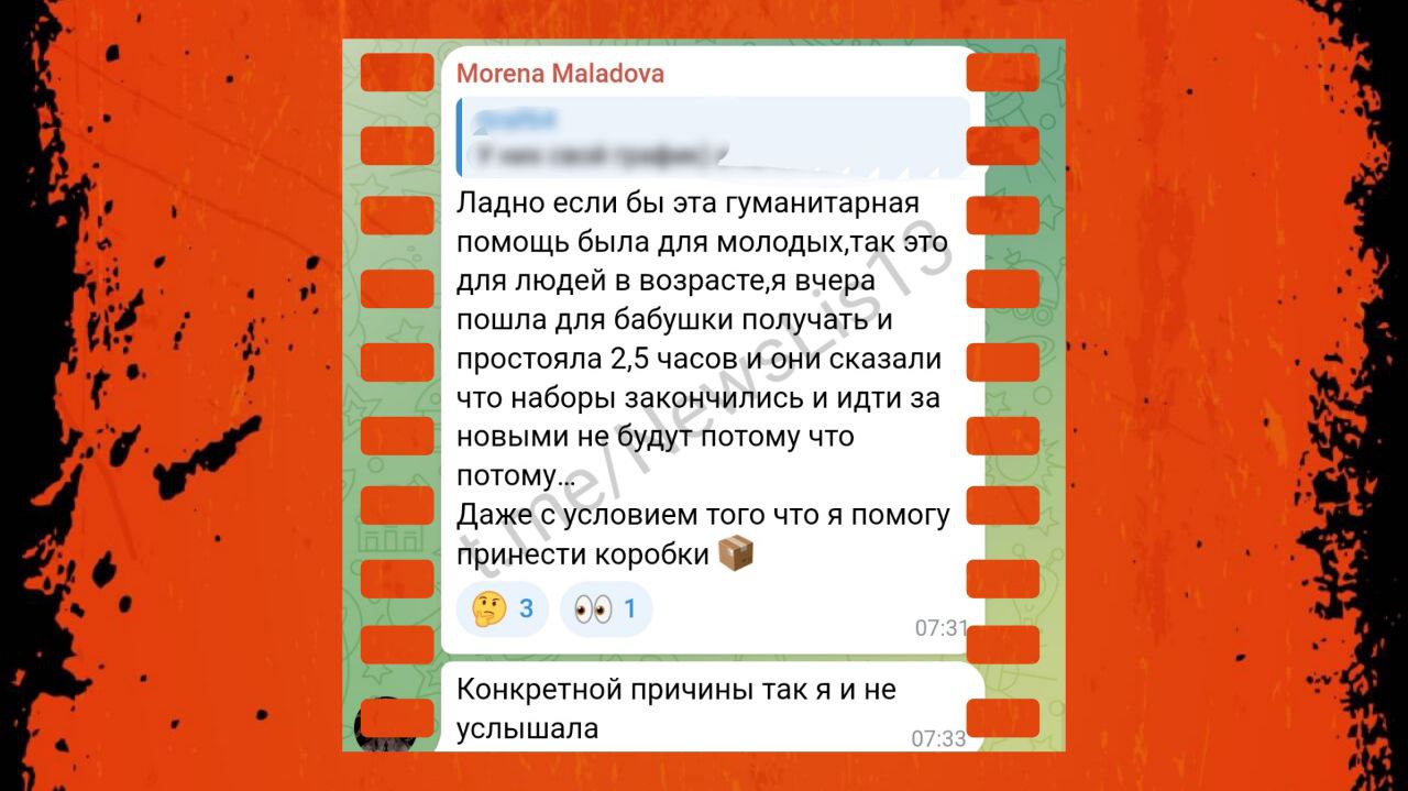 Как пишут местные жители в социальных сетях, получить гуманитарные наборы стало практически невозможно, передает Час Пик.
