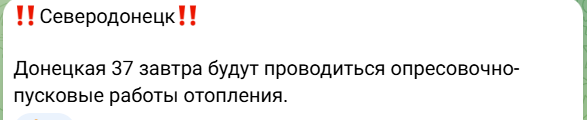 Также на местных каналах появилось объявление о проведении пусковых работ на улице Донецкой.