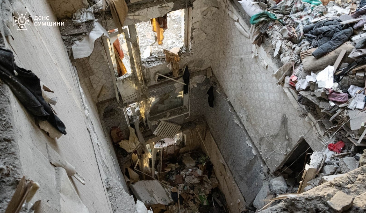 В Сумах на месте удара "шахеда" по многоэтажке завершены аварийно-спасательные и поисковые работы. В течение 19 часов спасатели разбирали завалы, доставая из-под развалин тела. Число погибших возросло до 9 человек.