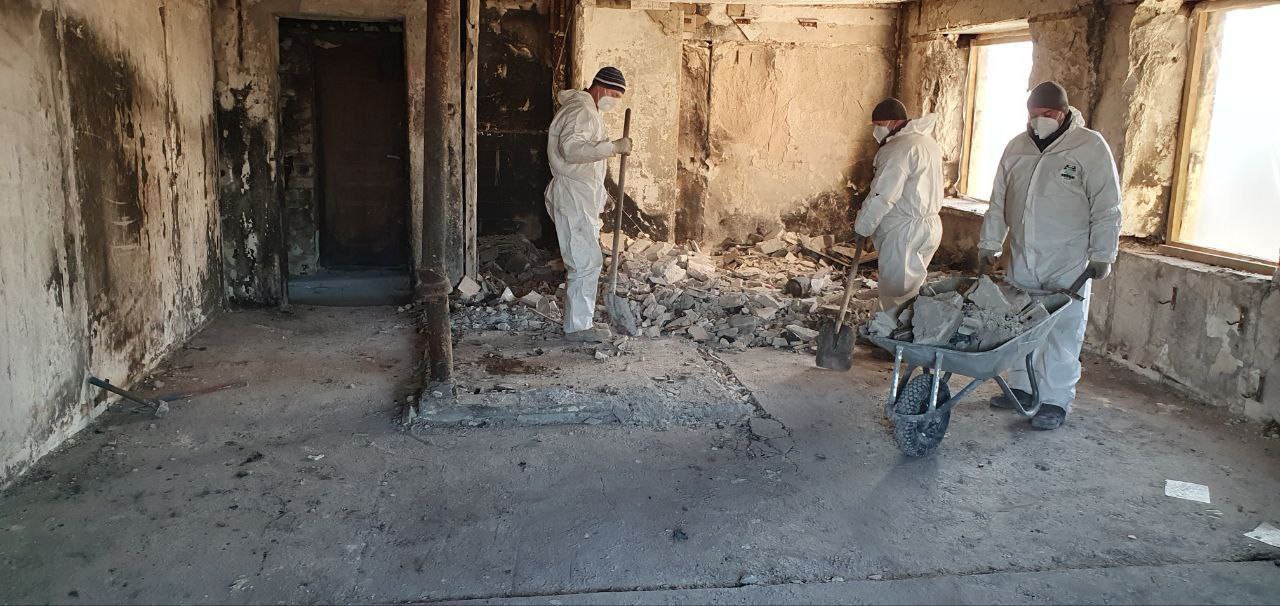 "На последнем фото вообще видно состояние несущей бетонной плиты после такого пожарища и трех лет под голым небом. Как такое признали жилым фондом?"