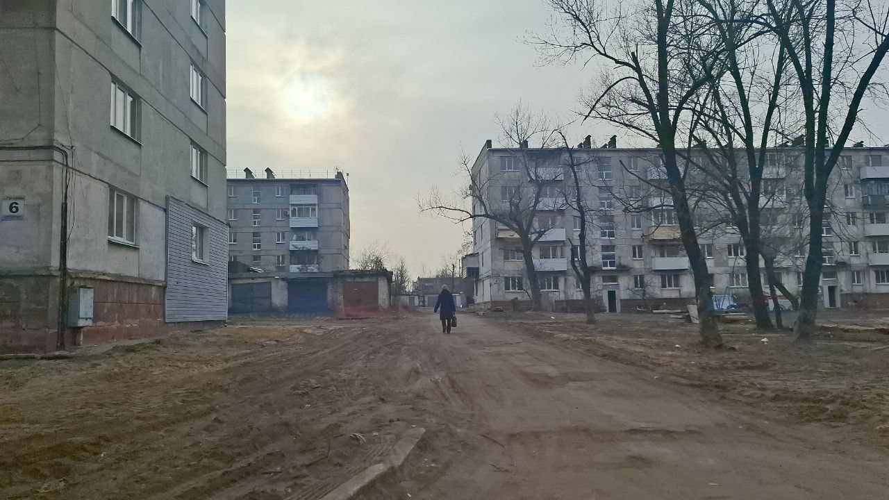 Город выглядит пустынным и разрушенным, многие здания остаются в аварийном состоянии.